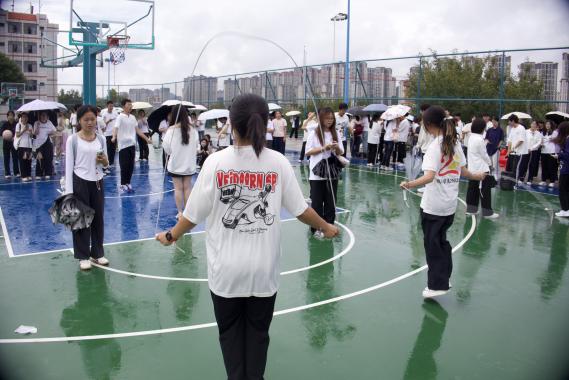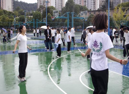首先登场的是“跳绳”项目。参赛选手需要在规定时间内尽可能多地完成跳跃动作,每一位选手都在全力以赴地挑战自己的极限。