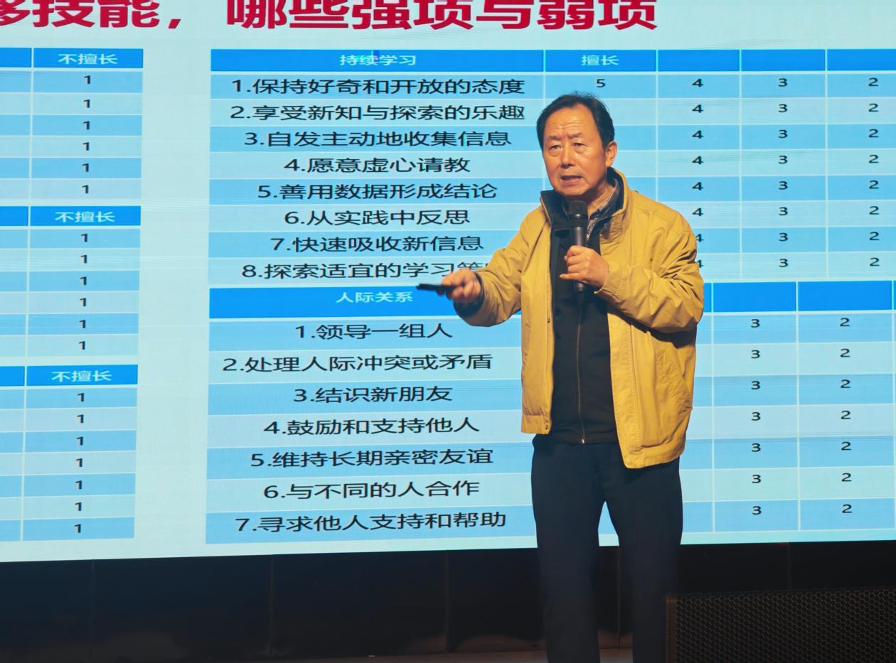 讲座开篇,2024级学长学姐带来王阳明《龙场悟道》舞台剧展演。剧中,王阳明被贬龙场后,于蛮荒绝境中坚守求索,在风雨飘摇的草庐内叩问本心、探寻圣人之道,最终豁然悟道,一句“此心安处便是吾乡”的台词,精准传递出坚守初心、安顿自我的精神内核,为整场讲座奠定深刻思想基调。随后,金春雷教授围绕心理适应与角色转变、学业发展规划、课外成长平台搭建、时间管理体系、人际交往能力培养、职业发展初步探索六大核心维度,为新生系统拆解大学起步阶段的成长路径。