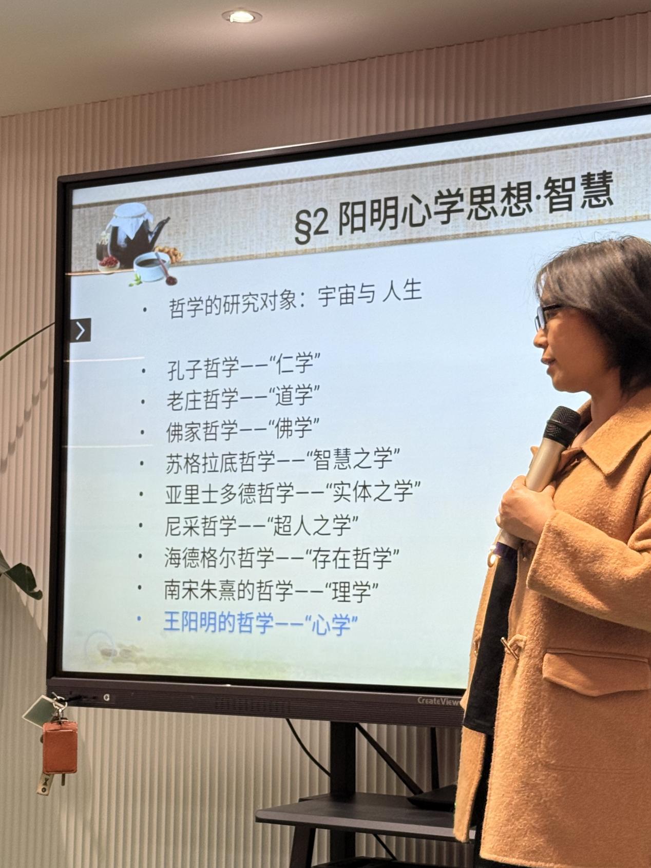 刘凤霞老师对上述小组分享和个人讲解内容进行了总结,并围绕“王阳明龙场悟道与知行合一”的主题作了补充纠正及深度阐释。很多同学在选修这门课之前,对王阳明的了解并不多。刘老师以通俗的语言,为大家阐释了“独立人格”与“坚定思想”的内涵,并鼓励同学们在学习与成长中,以阳明心学为引导,保持内心的清醒与笃定。她特别提到,大学阶段要避免迷茫与焦虑,守住初心,不慌张、