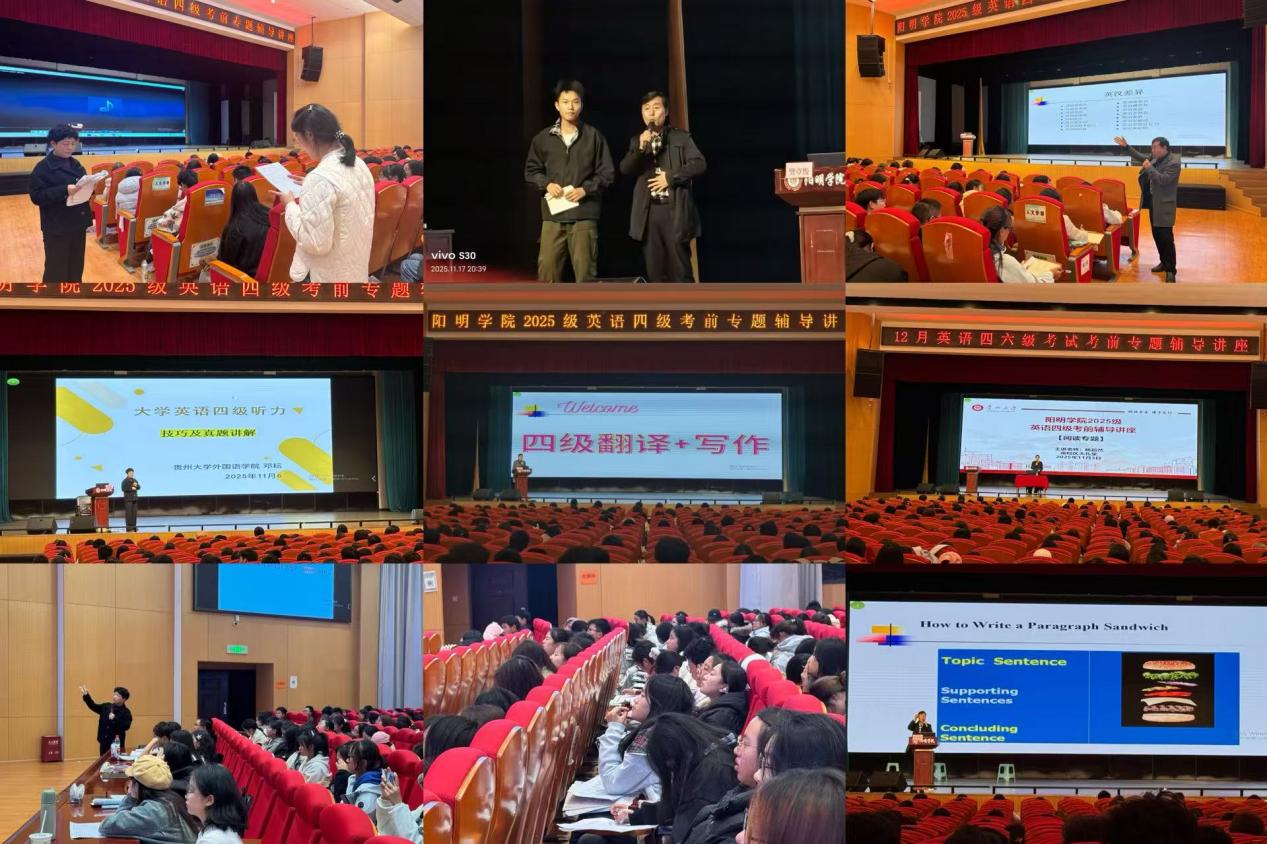 为深入贯彻落实贵州大学学风建设工作部署与“博学计划”育人要求,贵州大学阳明学院立足学生学业发展实际,坚持因材施教与分类指导相结合,在外国语学院、数学与统计学院的协同支持下,于2025年11月系统开展英语四级考前专题辅导与高等数学半期考试“强基行动”。通过精准化辅导强化应试能力、规范化考试监测学业质量,构建“以考促学、以学促用”的育人体系,为学生升学规划与职业发展夯实学业根基。学院党委书记罗聃宁、院长段忠贤、正处级组织员叶明、副院长胡玉群等领导班子成员全程统筹督导,深入活动现场巡查,确保“强基行动”落地见效。