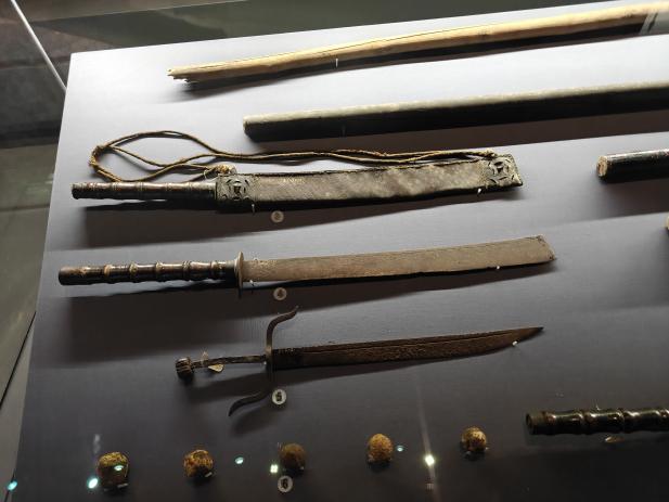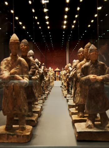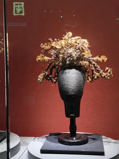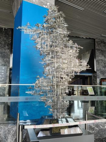 鎏金嵌宝的金饰头冠、色彩浓烈的傩戏面具、陶制骑马俑与“唐蒙会见多同”雕塑,以及贵山书院建筑模型等展品,立体呈现了黔地在工艺、民俗、军事、文教及建筑等方面的历史面貌。特别引人注目的是“长征”系列火箭模型,其展现的航天精神与黔地先民观天察地的古老智慧遥相呼应,完成了一场跨越时空的“古”与“今”的对话。