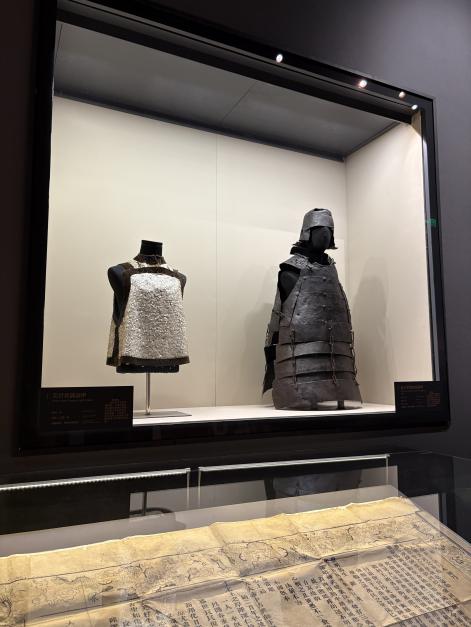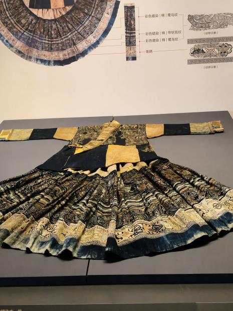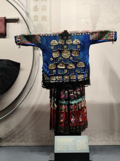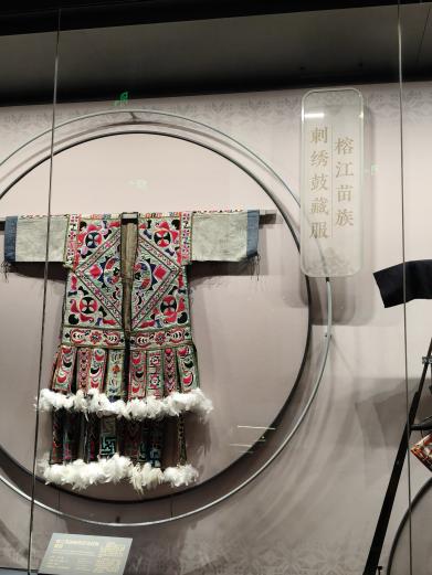 在展厅中,同学们细致观察、认真聆听。从“火的使用”与“生业方式”的展陈中,探寻黔中先民的生活智慧;在锈迹斑驳的古代农具与兵器前,感受农耕文明与专业知识的呼应。民族服饰展区成为读懂黔中文化的生动课堂——布满铆钉的传统甲胄、银饰龙纹的苗族盛装、纹样精巧的榕江苗族刺绣鼓藏服,以及质朴厚重的蜡染布料,无一不展现着少数民族对自然的敬畏与生活的艺术。许多同学用手机记录细节,感慨“身边的植物,早已成为文化传承的‘颜料’与‘针线’”。