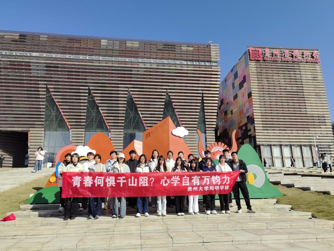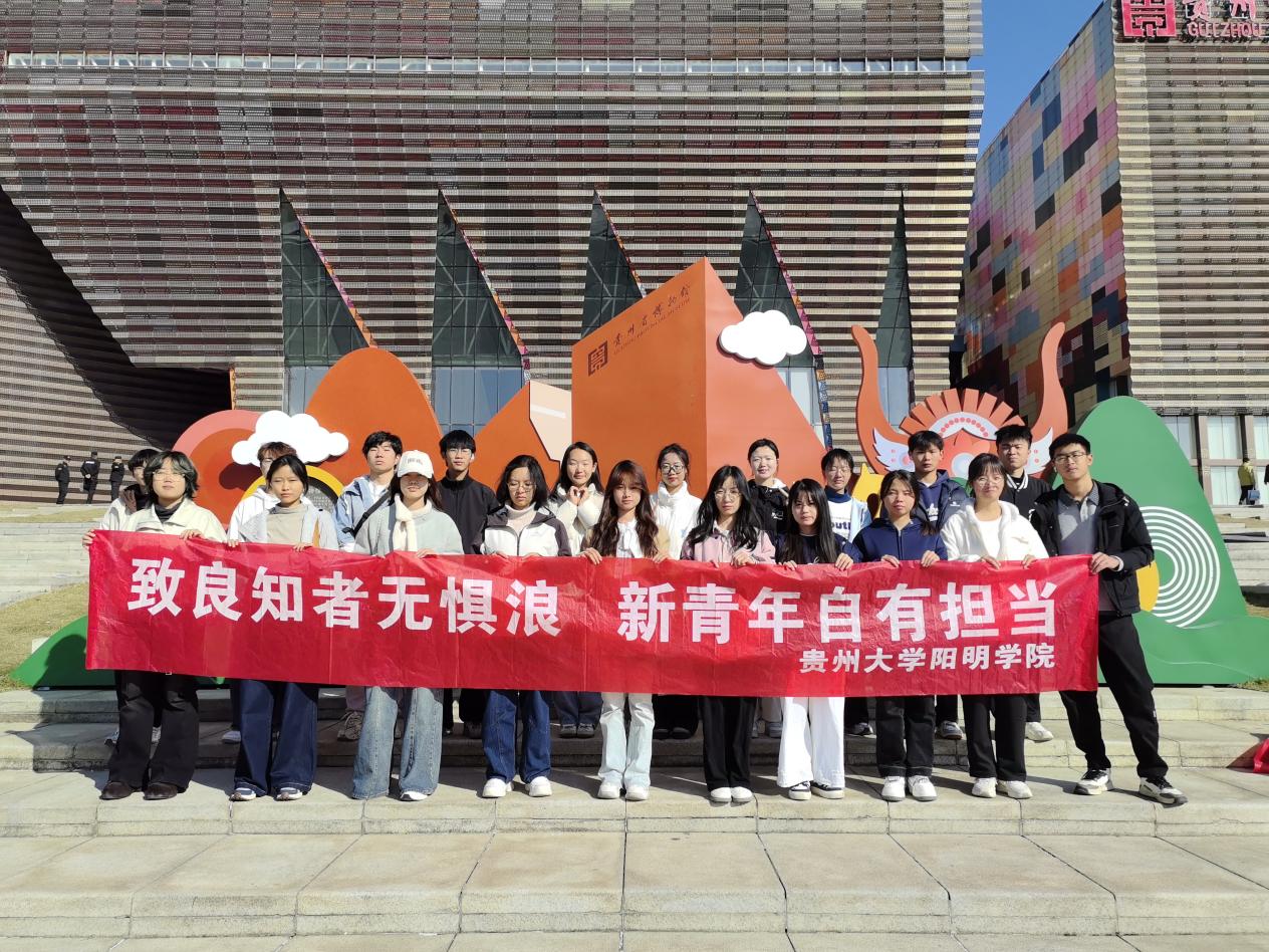 2025年12月14日,贵州大学阳明学院植物生产大类二十余名学子在授课老师刘凤霞教授带领下前往贵州省博物馆开展实地研学。本次活动作为《中国传统文化概论》通识课程的重要实践环节,以“解码黔中文明基因,夯实青年文化自信”为主题,通过沉浸式观展、文物解读与现场研讨,引导学生在触摸历史中深化对贵州地域文化的理解,促进专业学习与文化传承的融合。