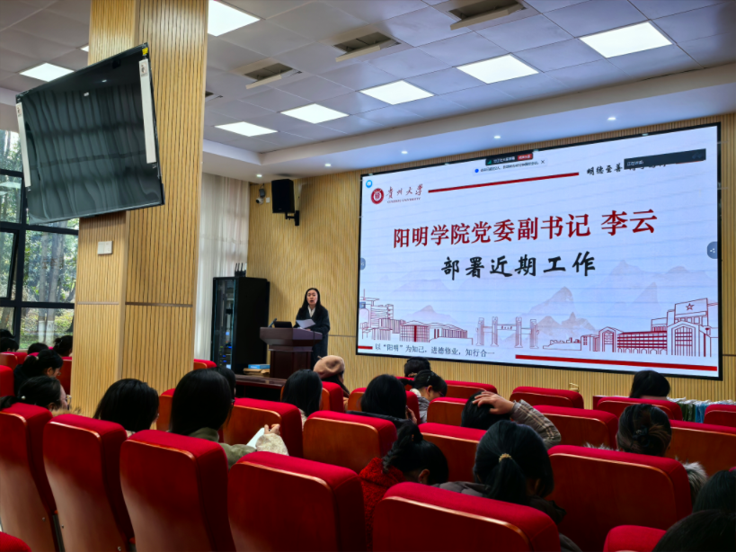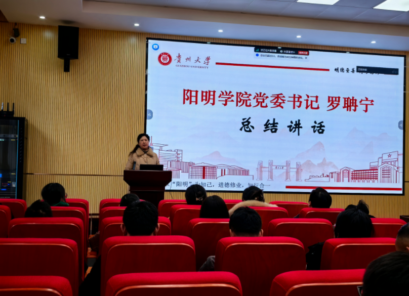 学院党委书记罗聃宁作总结讲话。她首先代表学院党委,向各专业学院班主任对阳明学院学生工作的大力支持表示衷心感谢。随后,她围绕多项核心工作提出明确要求:其一,要高度重视班级学风建设与学生体质健康提升工作,营造勤学善思、强身健体的良好班级氛围;其二,要强化专业引领,帮助大一新生吃透专业培养方案,做好“博学计划”的衔接工作,为学生专业发展夯实基础;其三,要再次严明期末考风考纪,清晰告知学生考试作弊的严重后果,确保期末考试公平公正;其四,要绷紧假期安全弦,密切关注学生寒假动态,守牢学生安全底线,同时引导学生利用假期参与社会实践与科创活动,为后续“双创”赛事储备力量。