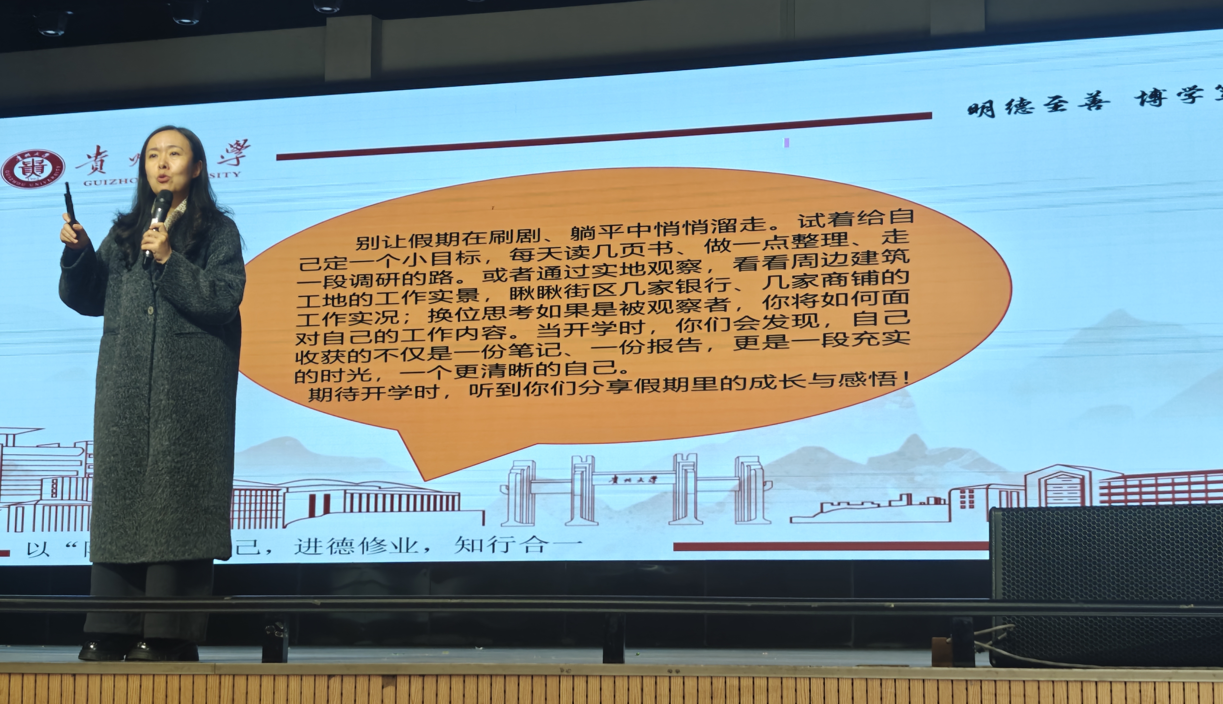 最后,阳明学院党委副书记李云为同学们解读“寒假赋能资源包”,希望同学们把个人研修与赛事备赛紧密结合,在乡村振兴的田野上、产业发展的一线中、文化传承的脉络里,做调研、找问题、谋创新。无论是为 “挑战杯”“中国国际大学生创新大赛” 积累素材,还是在 “返家乡” 实践中锤炼本领,都是在为创新意识筑基、为科研精神赋能。