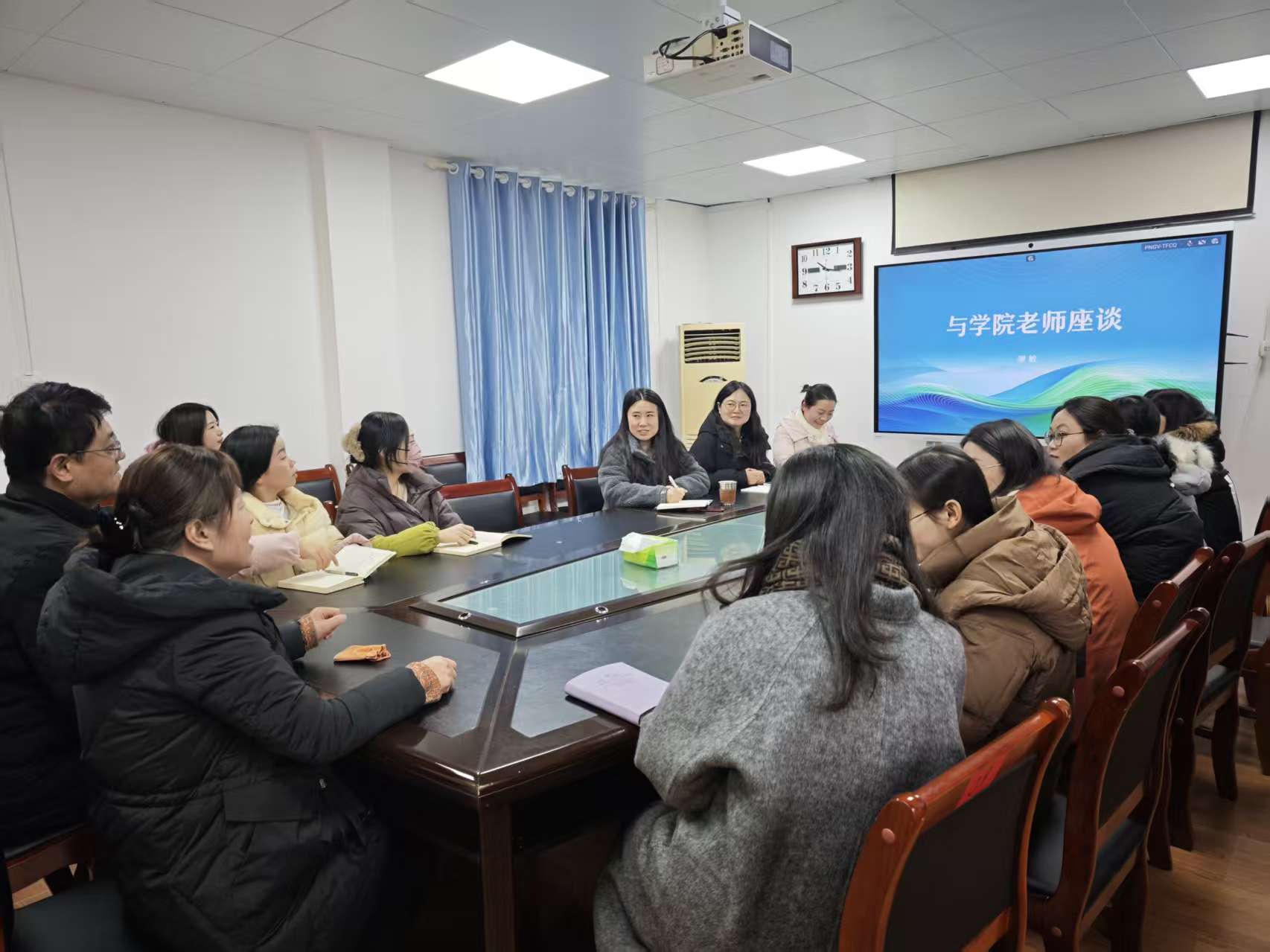 为助力学院年轻教师夯实思想根基、明晰育人方向,2026年1月7日上午,学院关工委副主任廖敏同志与学院年轻教师代表13人开展“红烛絮语·青蓝工作坊”面对面活动,学院关工委常务副主任叶明同志出席本次座谈会。