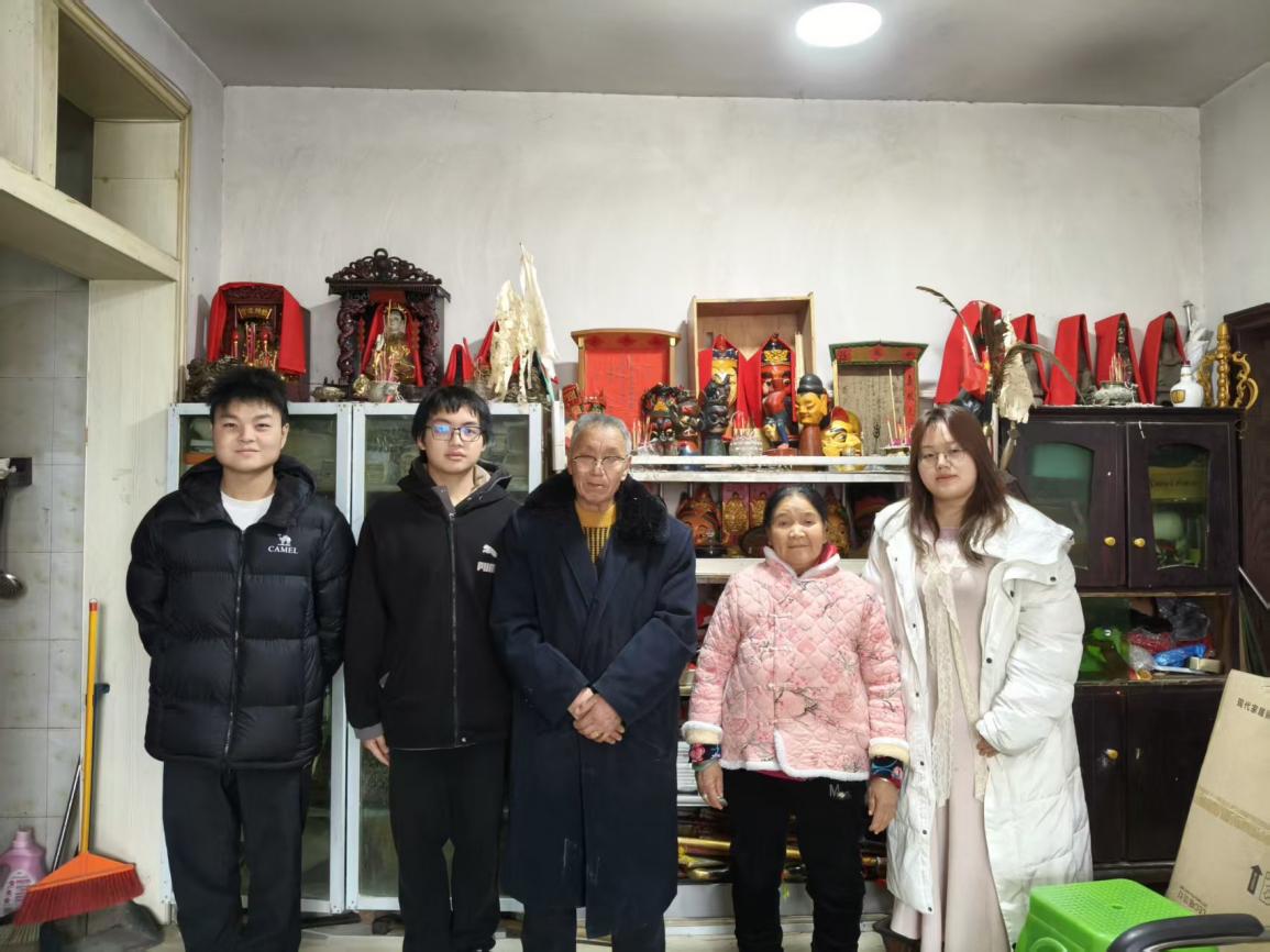 核心访谈后,团队开展为期一周的多维调研,让实践视野不断开阔。在中国傩城,游客化傩戏表演与村寨完整还原傩仪的鲜明反差,让队员对非遗传承“双轨并行”有了真切的体会;镇文化广场的问卷与访谈中,一位年轻父亲将傩戏面具比作“奥特曼怪兽”却不知其驱疫寓意,直观呈现出公众兴趣与文化深层理解的温差。同时,团队在镇政府协调下,横向走访民间艺人、文化学者,从多视角全面把握傩戏的生存现状与社区认知。