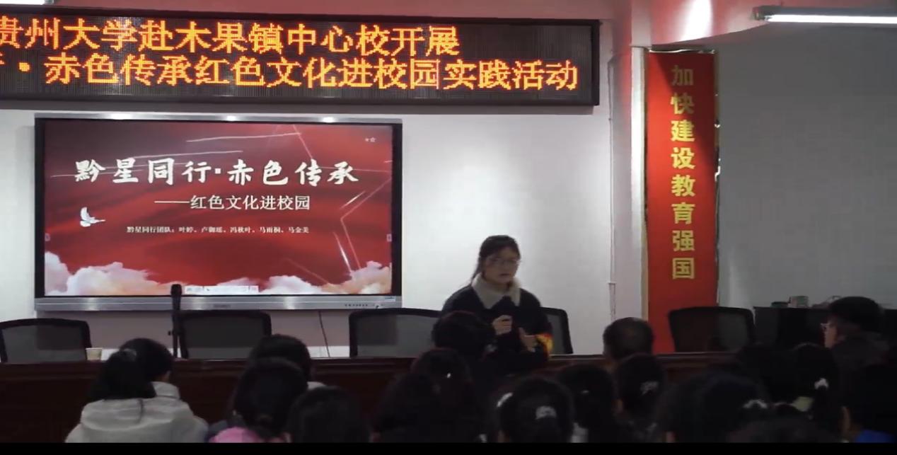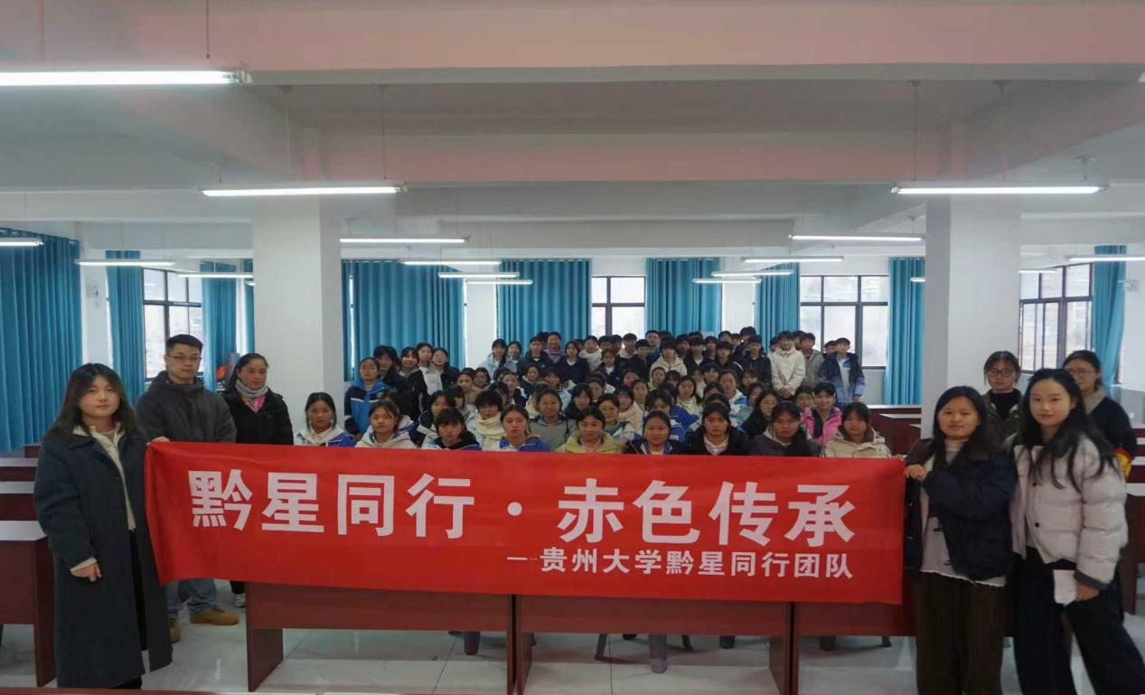 2026年1月20日,贵州大学黔星同行团队走进六盘水市木果中心校,开展“黔星同行·赤色传承”红色文化进校园实践活动。这场别开生面的“双轨实践”,巧妙串联起厚重红色历史与学生现实升学困惑,以红色寻根与升学导航为两大主线,在“若穿越回革命时期,你能胜任什么”的热烈讨论中拉开帷幕,引导学子从红色革命史诗与“三线”建设奋斗故事里汲取力量,为学业选择与未来规划注入信念,让红色基因真正成为陪伴青春的成长指南