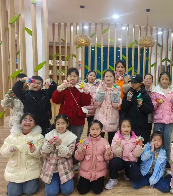 实践队为一至六年级的小朋友开设趣味手工课堂,扭扭棒DIY成为孩子们的欢乐天地。在队员的指导下,孩子们的指尖灵动翻飞,普通的扭扭棒化作一件件彩色小作品。蝴蝶戒指、可爱摆件,每一件手作都藏着童真与巧思,其中满载心意的蝴蝶戒指,更是孩子们向妈妈表达真挚感恩的载体。这场手工创作,不仅让孩子们在动手实践中激发创意、锻炼能力,更让童真与温暖交融,让感恩的美好品质在互动中自然传递。