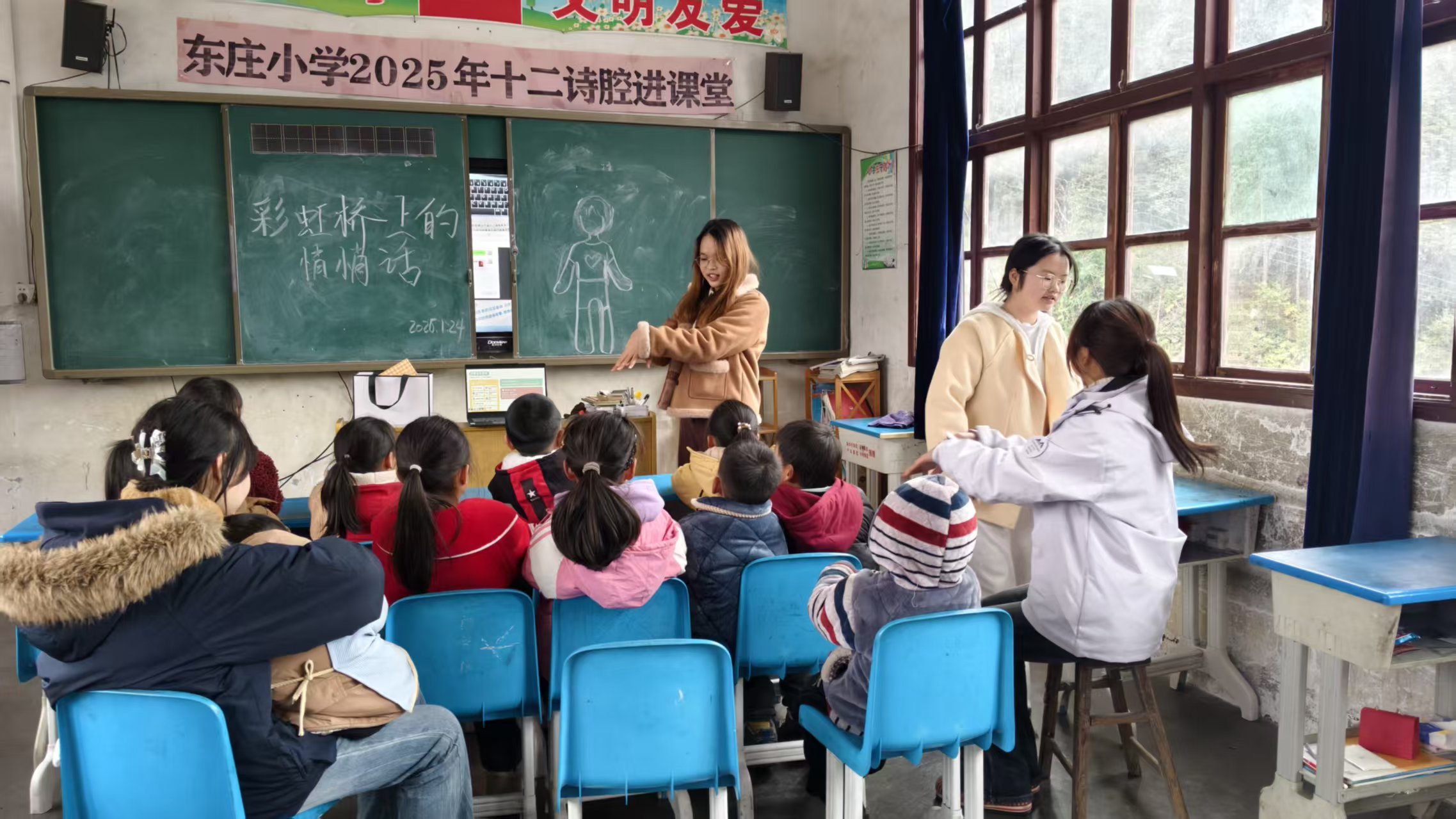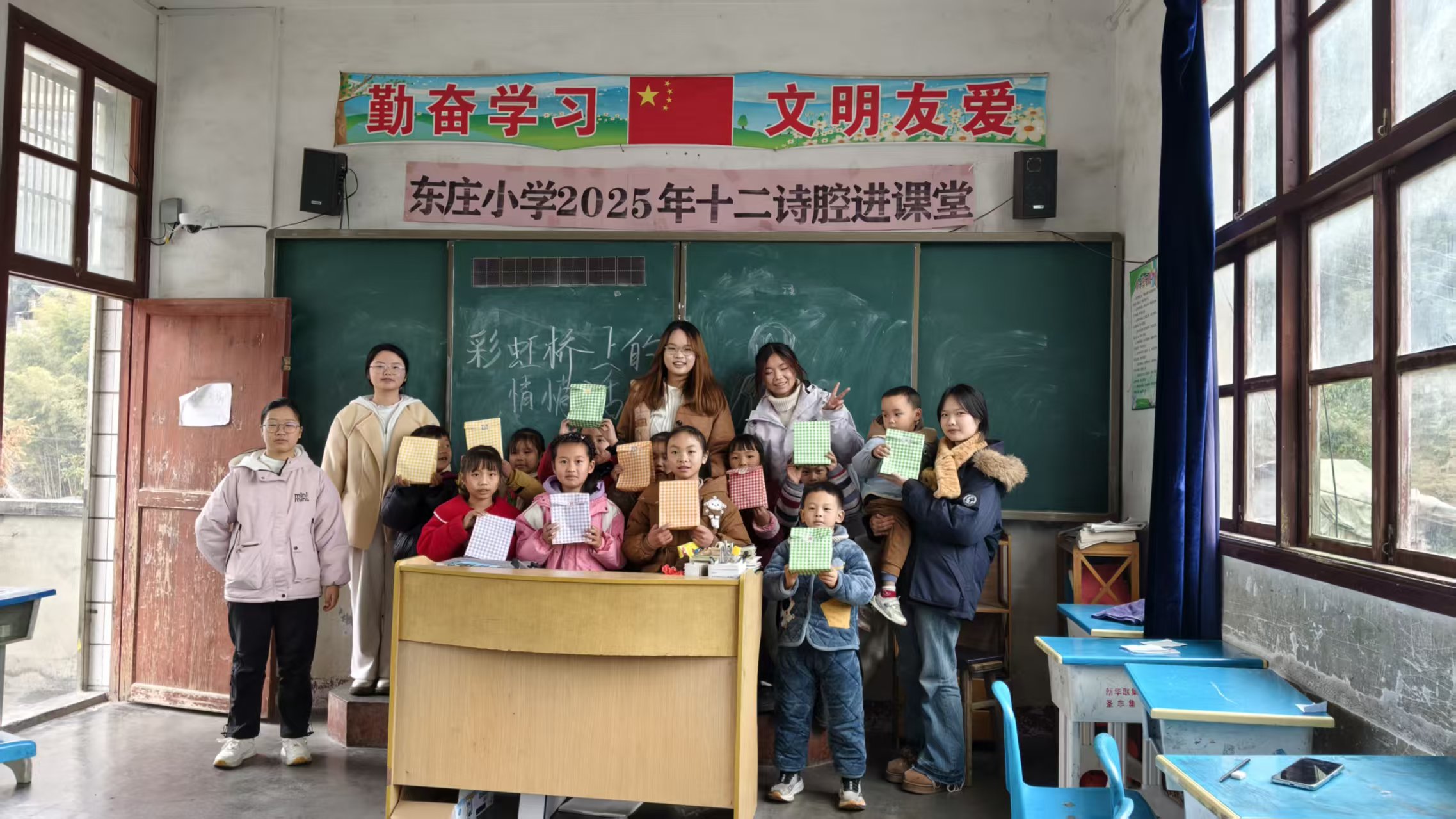 除核心的生理健康教育外,实践团队还精心策划了国学诵读、梦想分享、才艺展示等丰富多彩的互动活动,打破孩子们的羞涩与怯懦,让每一个孩子都能站上舞台、展现自我,成为自己人生的主角。正如“苔花如米小,也学牡丹开”,在学子们的鼓励与陪伴下,曾经腼腆的孩子们渐渐褪去羞涩,眼神愈发坚定、笑容愈发灿烂,在自信表达中收获成长与喜悦。每一句“长风破浪会有时”的真诚鼓励,每一次“幼吾幼以及人之幼”的悉心护送,每一场敞开心扉的心灵交流,都在孩子们心中播下希望与温暖的种子。临别之际,学子们为孩子们准备了七彩包装的礼物,恰似“赤橙黄绿青蓝紫,谁持彩练当空舞”,每一份礼物都承载着学子们的深深祝福与殷切期盼;趣味英语课堂上,学子们以歌谣为桥、以快乐为引,带领孩子们感受语言的魅力,为他们推开一扇“欲穷千里目,更上一层楼”的视野之窗,让大山里的孩子也能窥见更远的世界。