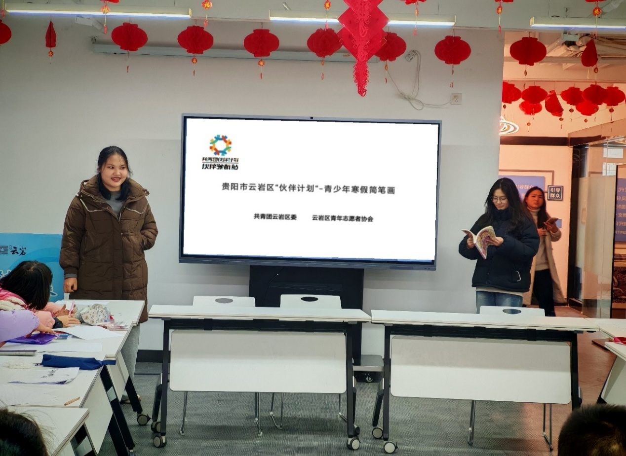 实践队走进黔灵山镇社区服务点,开展儿童爱心辅导志愿服务,用陪伴与知识为孩子们的假期添彩。简笔画教学中,队员杨扬从基础线条入手,引导孩子们以画笔描绘家乡美景、勾勒马年新春愿景,小河绿树、奔腾小马跃然纸上,斑斓画作里满是童真与憧憬。课业辅导环节,队员们采用“一对一+小组互助”模式,针对语文阅读理解、数学应用题等薄弱点开展专项指导,以“趣味例题+分步拆解”破解知识难点,耐心讲解解题思路。同时,队员们分享高效学习方法与大学生活趣事,引导孩子们树立远大理想,温馨的辅导氛围中,孩子们的求知欲被充分激发,一张张笑脸洋溢着收获知识的喜悦。