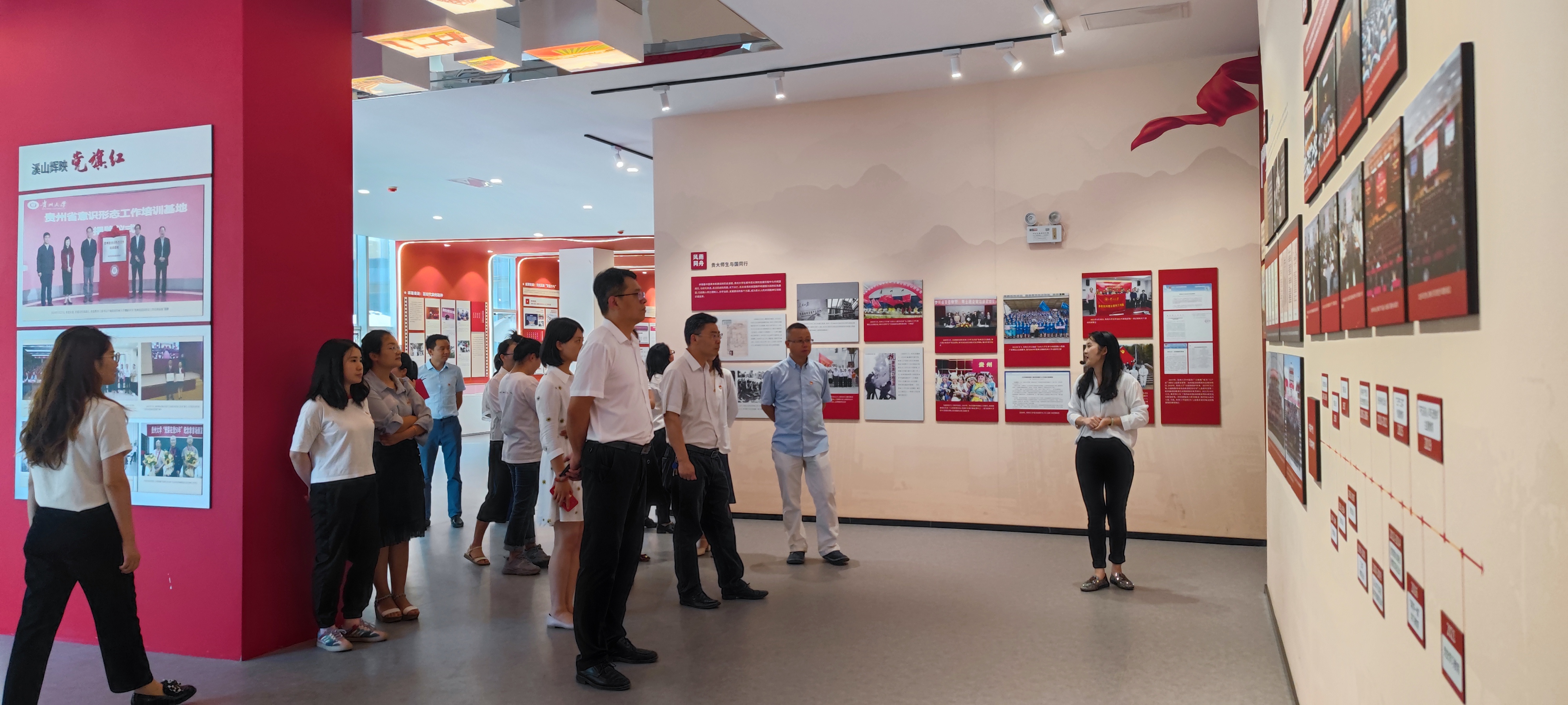 在雅文楼党建思政文化中心,学院辅导员刘籽艺、贺越分别从党史中的贵州篇章、党史中的贵大印记、加强党的全面领导、党建引领事业发展四个篇章生动地讲解了中国共产党的发展历程、贵州百年沧桑巨变的历史及发展历程、沧桑巨变中的贵州大学,向参观人员全方位展现了贵州人、贵大人在百年征程中的英勇事迹。