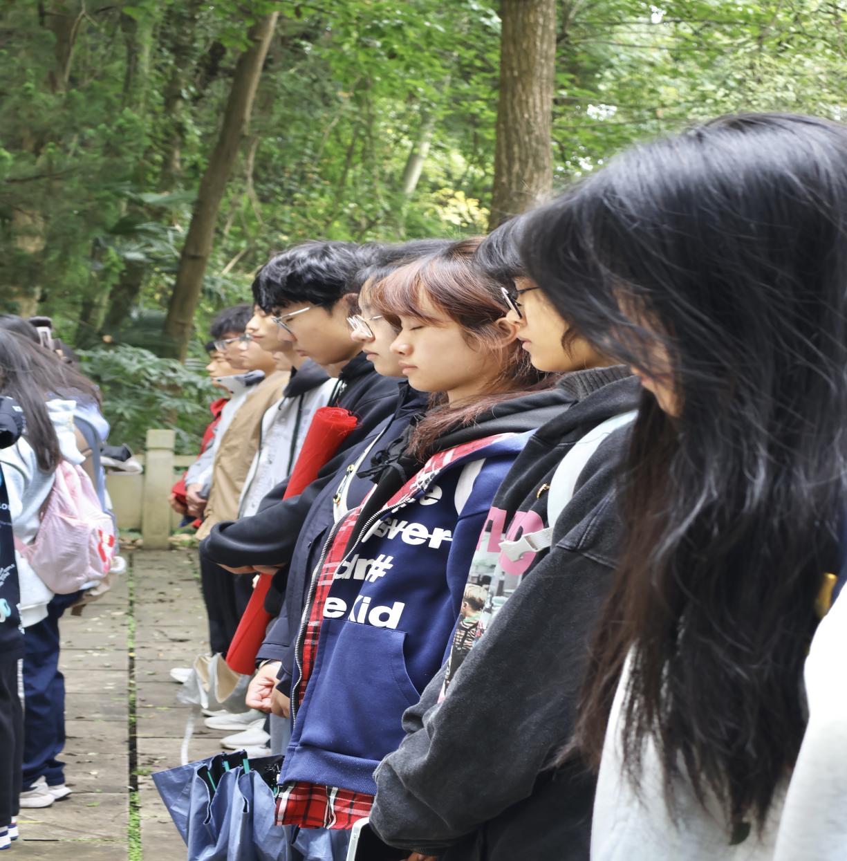 随后,工作人员详细讲解活动流程、祭扫礼仪及安全须知,全体志愿者统一列队前往戴安澜将军墓。在庄严肃穆的氛围中,志愿者们有序敬献鲜花,静立聆听讲解员讲述戴安澜将军投身抗日、忠贞报国的英雄事迹,深刻感悟先烈为国家民族挺身而出的崇高气节与爱国情怀。全体人员肃立默哀一分钟,以最真挚的敬意缅怀革命先烈,接受深刻的红色精神洗礼。
