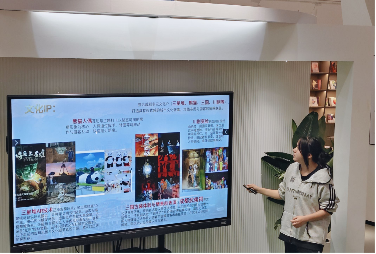 成都小组则紧扣青年文化,在宽窄巷子、三星堆等传统元素之外,创新融入王者荣耀数字文创、AR技术应用等当代话题,呈现了“天府之国”守正创新的城市品格。