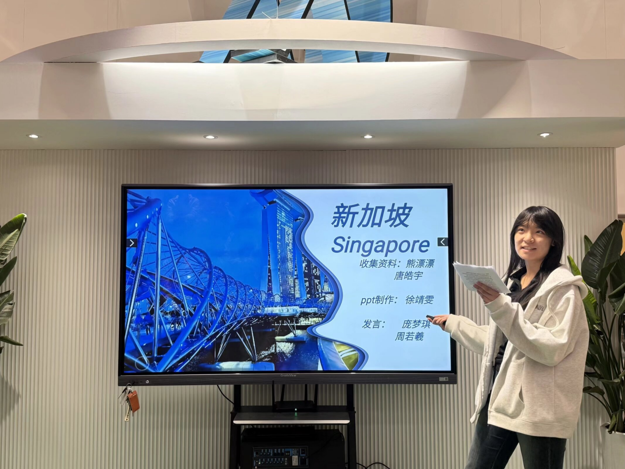 新加坡小组则聚焦“花园城市”的可持续发展理念,从滨海湾花园的生态设计到多元文化的和谐共生,为同学们提供了城市治理的新思路。