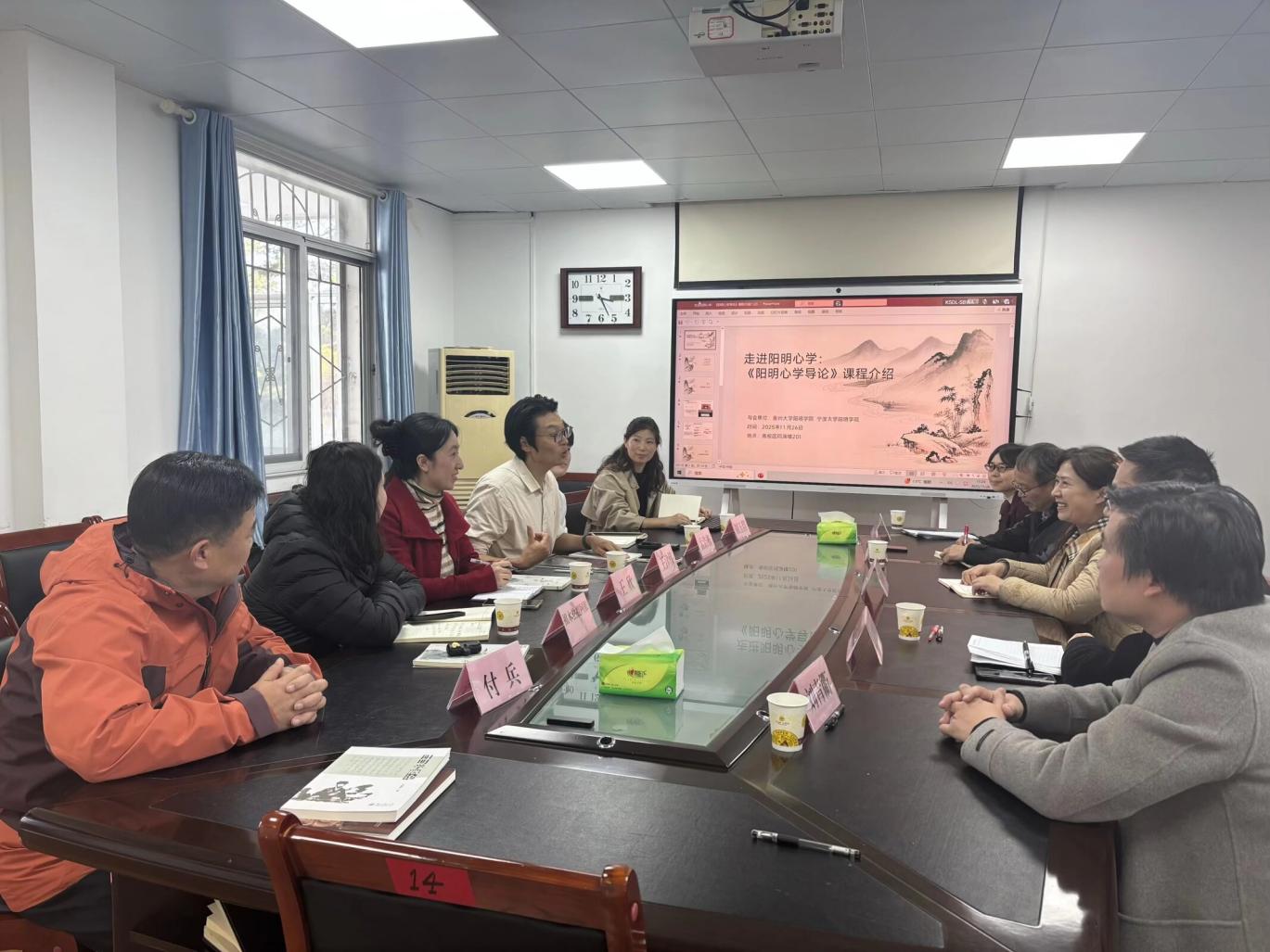 座谈会上,罗聃宁首先代表学院对宁波大学阳明学院党委委员王津伟一行的到访表示欢迎。随后胡玉群从课程缘起与定位、开课数据与师资配置、研学实践品牌建设、学生成长反馈与育人成效四个维度,详细介绍了阳明心学导论的课程建设情况。