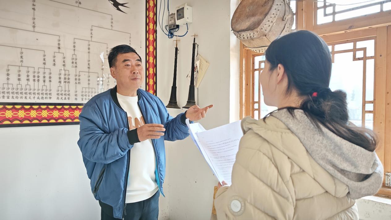 实践之始,我们循着莫轰的悠扬乐声走进普宜镇道角村,这片孕育莫轰文化的沃土,处处洋溢着对非遗传承的热忱。道角村村支书罗炳然对莫轰传承调研与宣传工作给予全力支持,带领我们走进村委会提取莫轰珍贵资料,从历史源流、吹奏技艺到传承现状,系统的文字与影像资料为我们的实践调研筑牢根基,也让我们深切感受到地方基层对非遗保护的重视与担当。在村支书的牵线与陪同下,我们得以与省级非物质文化遗产莫轰传承人沙汝杨先生深度对话,一场跨越年龄与阅历的文化交流,就此拉开序幕。