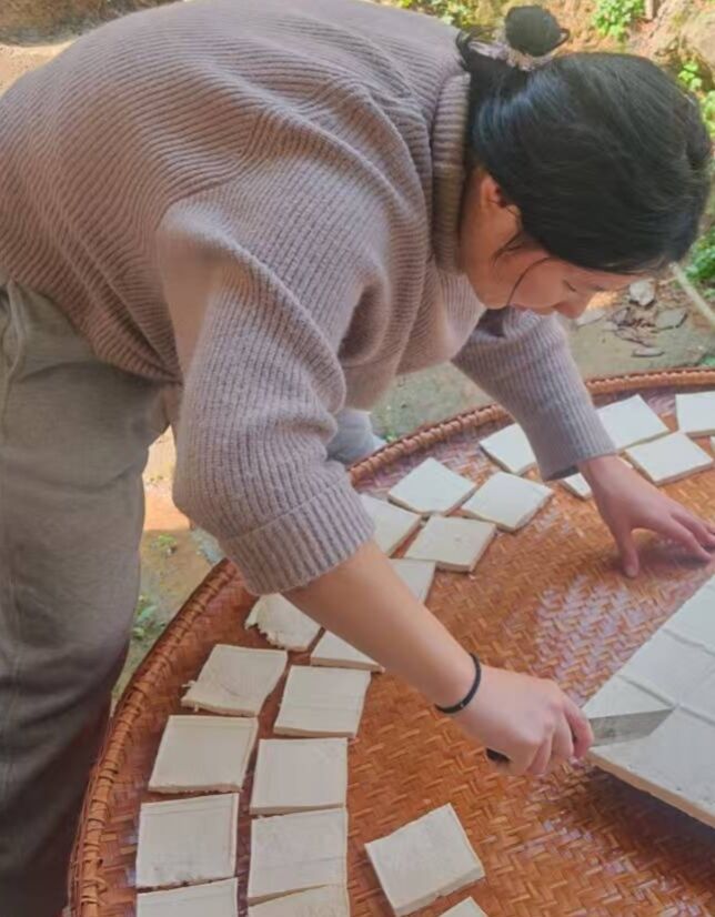调研团队因地制宜采用差异化调研方法,在赤水市分三站开展实地走访与分层访谈,先后走进香樟林广场、丙安镇、复兴镇,与老中青不同年龄层居民交流,探访红色文化地标与非遗场馆,还亲手学习赤水黄粑制作技艺。在茶陵泰和村,团队面向58位村民开展问卷调查,精准收集乡村文化传承与治理的群众反馈,还结合春节节点,实地体验龙灯扎制、豆腐制作等民俗工艺。